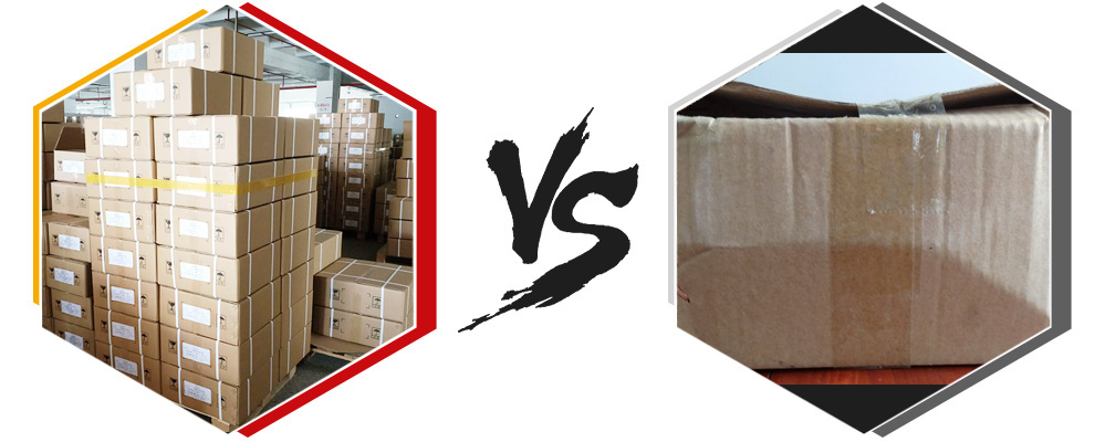 其他生產(chǎn)商為降低成本,一般采用普通紙箱,長途運輸中很容易造成紙箱破損、變形,內(nèi)包裝使用廉價再生料膠袋包裝,容易破損。 導致問題:包裝變形,容易受潮,貨物損失,甚至中途丟失,誤工誤時。